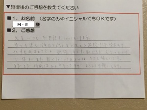 そして、施術中はリラックスして受けられるように施術を行っています。ですから、施術中に何か不快なことなどがありましたら遠慮せず言ってください。